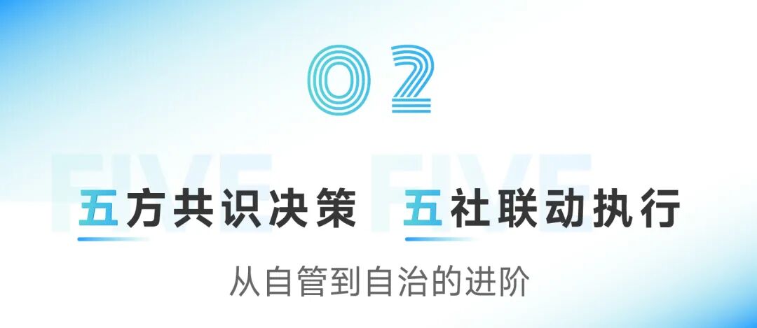 五社联动执行 普通事项由联盟经理进行日常执行,而通过分级审议的重要事项在落地执行时,可以依托村集体组织中现有的村民代表、组长、楼道长、志愿者组织,结合公安、城管、消防、卫生等行政机关派驻村社的网格员进行联合执行,保证执法效力,解决大部分商品房“社区-业委会-物业”模式所不能快速有效执行的违章拆除、装修管理等重难点事项。